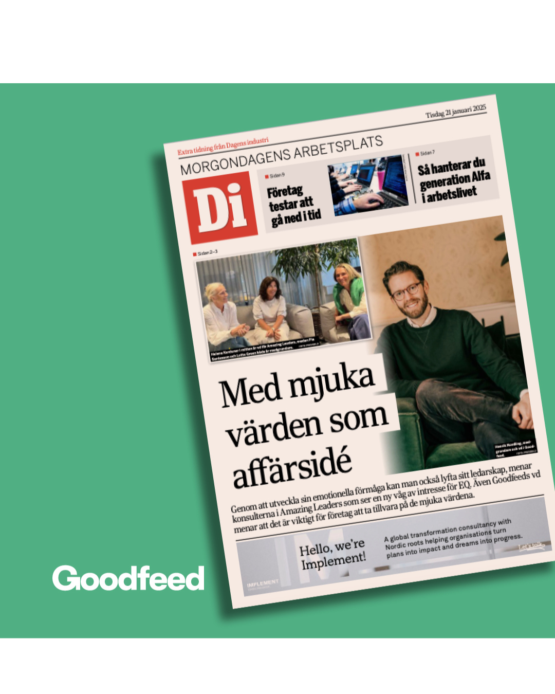 Goodfeed har blivit uppmärksammat i Dagens Industri! 🎉 Att få synas i en av Sveriges största och mest inflytelserika affärstidningar är ett stort erkännande för vårt arbete med att lyfta emotionell intelligens (EQ) som en avgörande faktor för framgång i näringslivet.